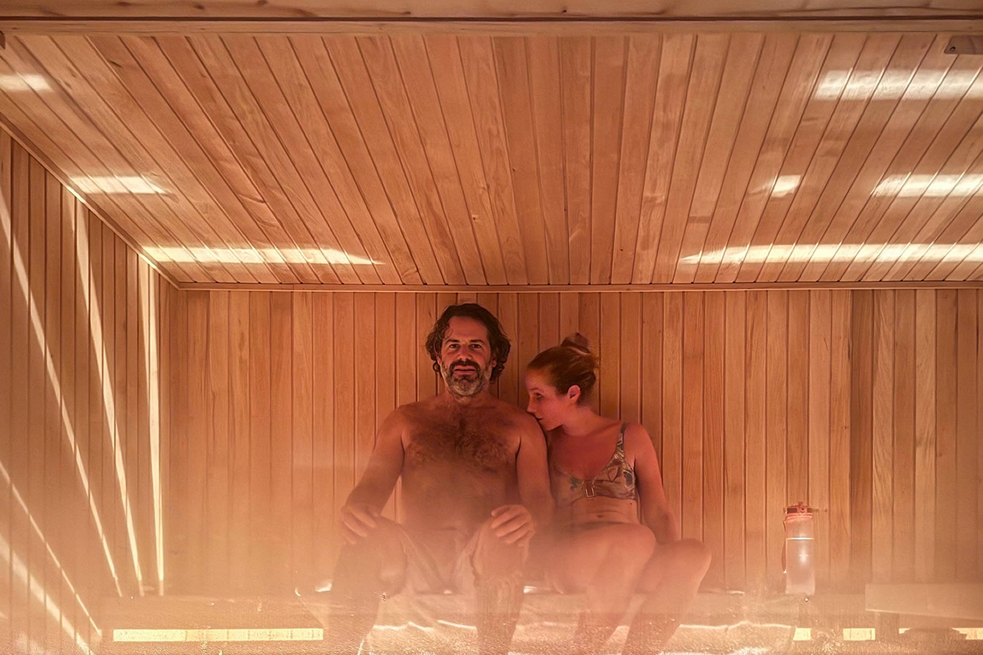 Our five-person sauna runs in 45-minute sessions, starting on the hour.
